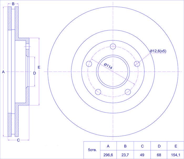 Диск тормозной /передний /TI-GUAR для Nissan Primera 1999-2006 Teana Skyline V35; 296.6/24мм; TG-40206-9Y000 PD3212085S 3212085 0986479S99 09A11310