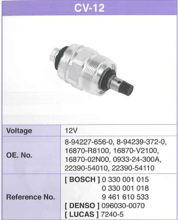 Клапан отсечки HKT для Toyota; двигатели серий L, C, N; CV-12; 8-944227-656-0 8-942393720*16870R8100 16870V2100