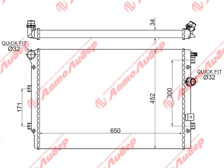 Радиатор охлаждения /AUTOLEADER для Volkswagen Tiguan 2007- Sharan Alhambra 2010 1.4T 2.0T 2.0TD /без крышки; AU-001-1216; (RB-1605 LRc18N5) VW0006 AU0011216 5N0121253L